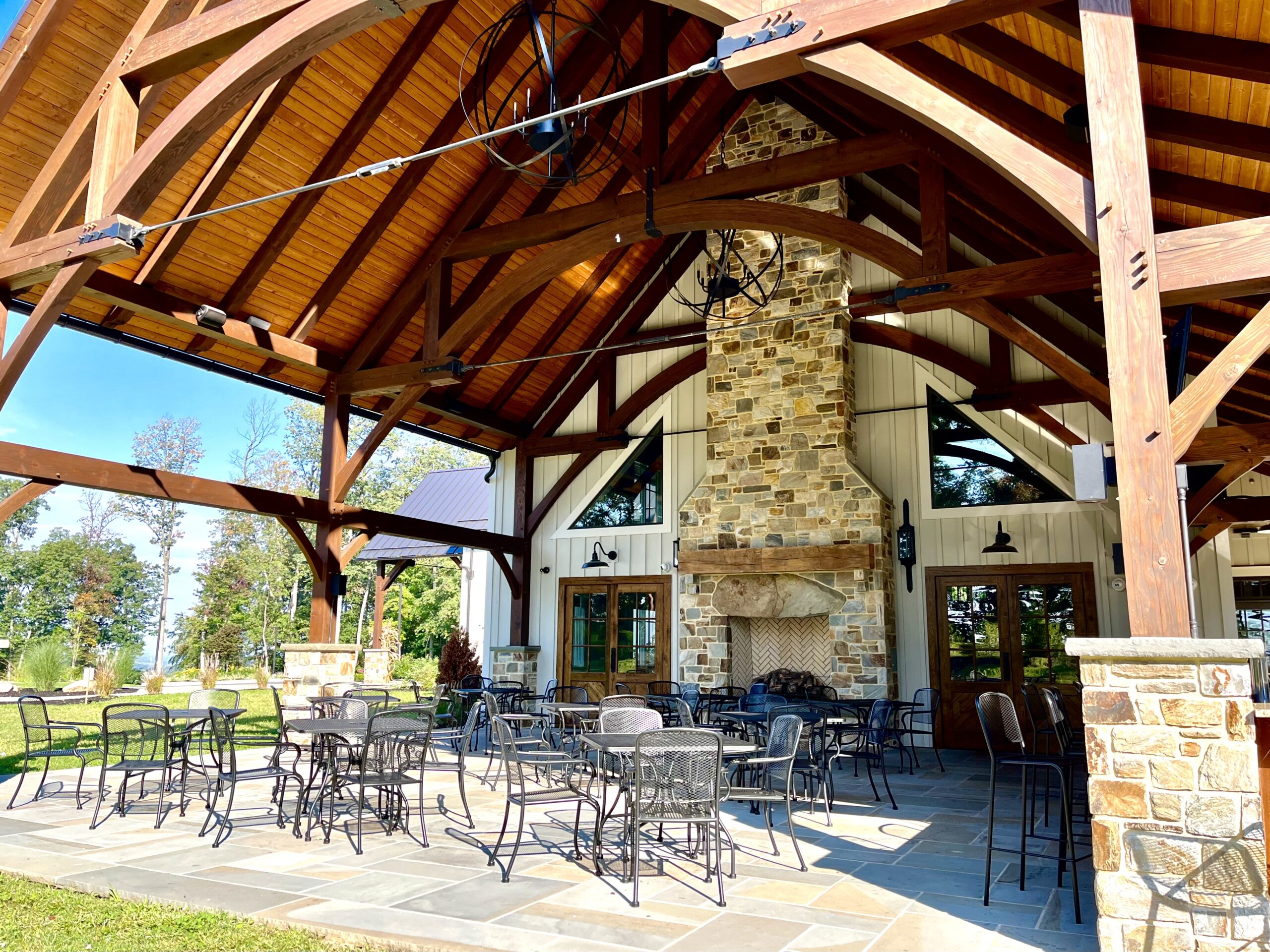 Our Patio, equipped with four 65-inch TVs, a full bar, and large fireplaces is the perfect spot to enjoy a beautiful day outside.